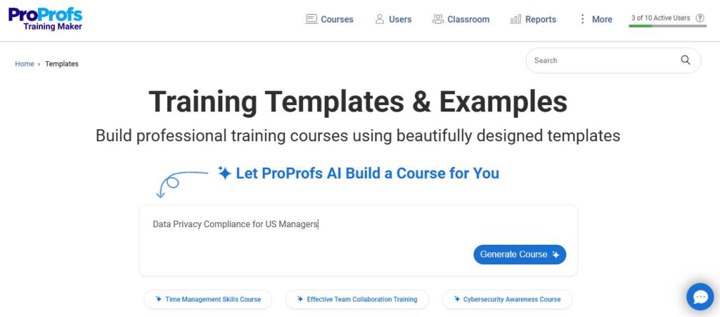 Limited customization and restrictive templates. A G2 reviewer described SC Training as “very opinionated”, noting it was “only good if you are willing to do things the way THEY think you should do them.” PowerPoint imports were restrictive, with no ability to change page types or import audio and video. ProProfs Training Maker addresses this with 500+ fully editable courses and templates, full white-label branding, and the ability to embed courses on your own website.