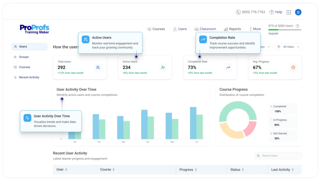 “The reporting issue – the master report only reflects courses that are 100% completed. We needed to track progress across the whole team, not just completions.” – ProProfs customer, onboarding call notes