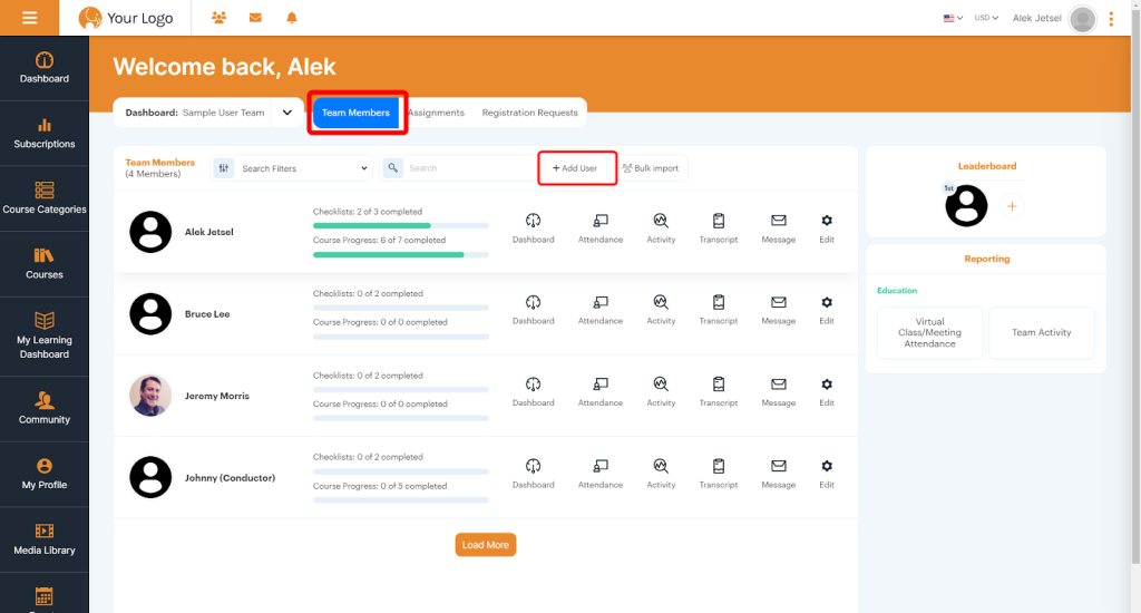 - Built-in eCommerce and subscription tools for organizations that monetize training externally